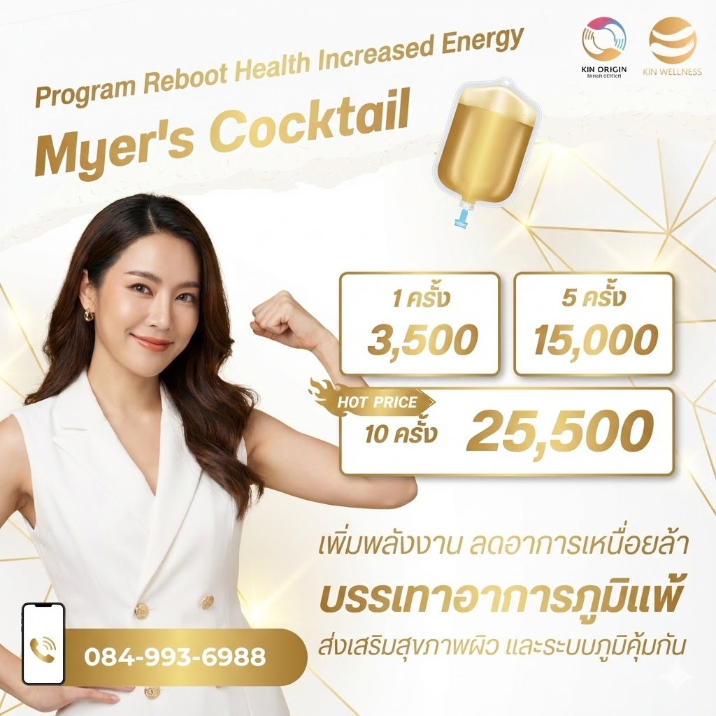 Program รีบูตสุขภาพ เพิ่มพลัง ด้วย Myer’s Cocktail ราคาเริ่มต้น 3,500 บาท