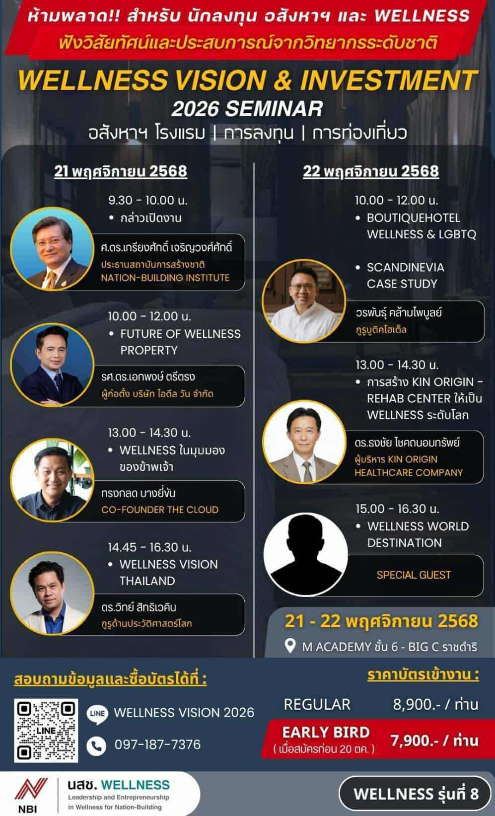 (อสังหาโรงแรม | การลงทุน | การท่องเที่ยว) ฟังวิสัยทัศน์และประสบการณ์จากวิทยากรระดับชาติ — ยกระดับโรงแรมของคุณให้เป็น Global Wellness Destination